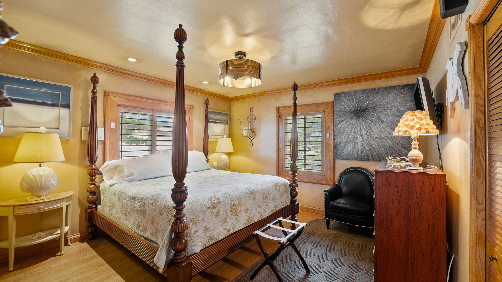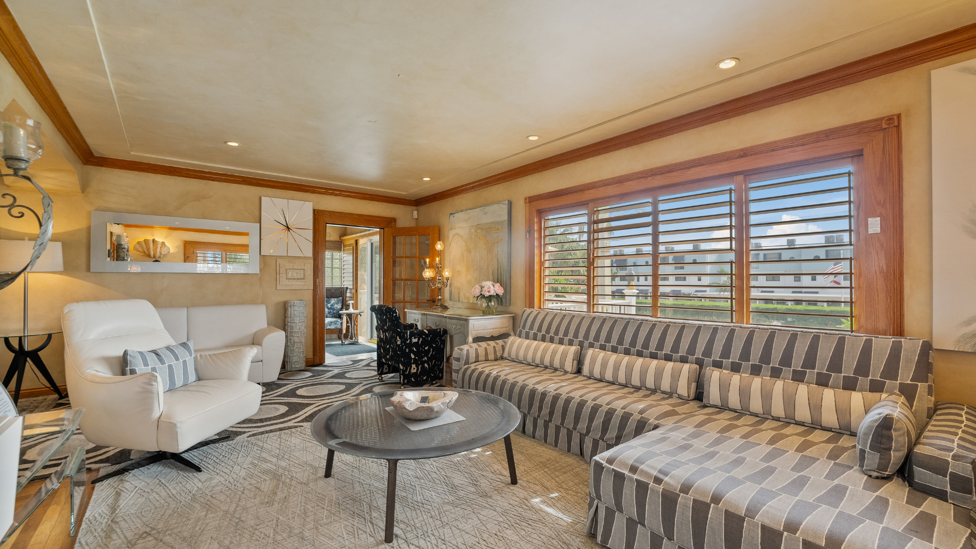 This trendy chic Deerfield Beach Coastal Vacation Rental welcomes you with swanky modernist leather sofas, a desk and chair, art, a 55" HDTV, a DVD Player and a music CD player with speakers in each room.