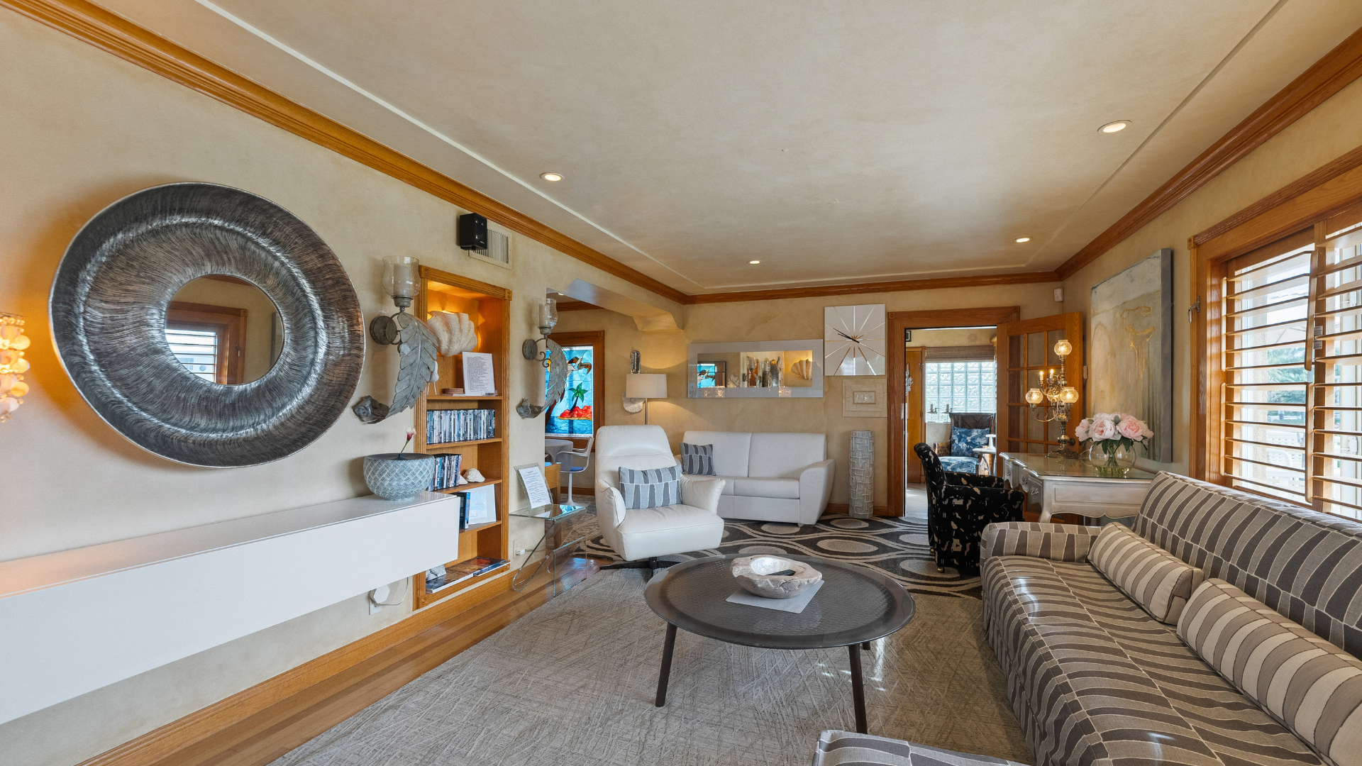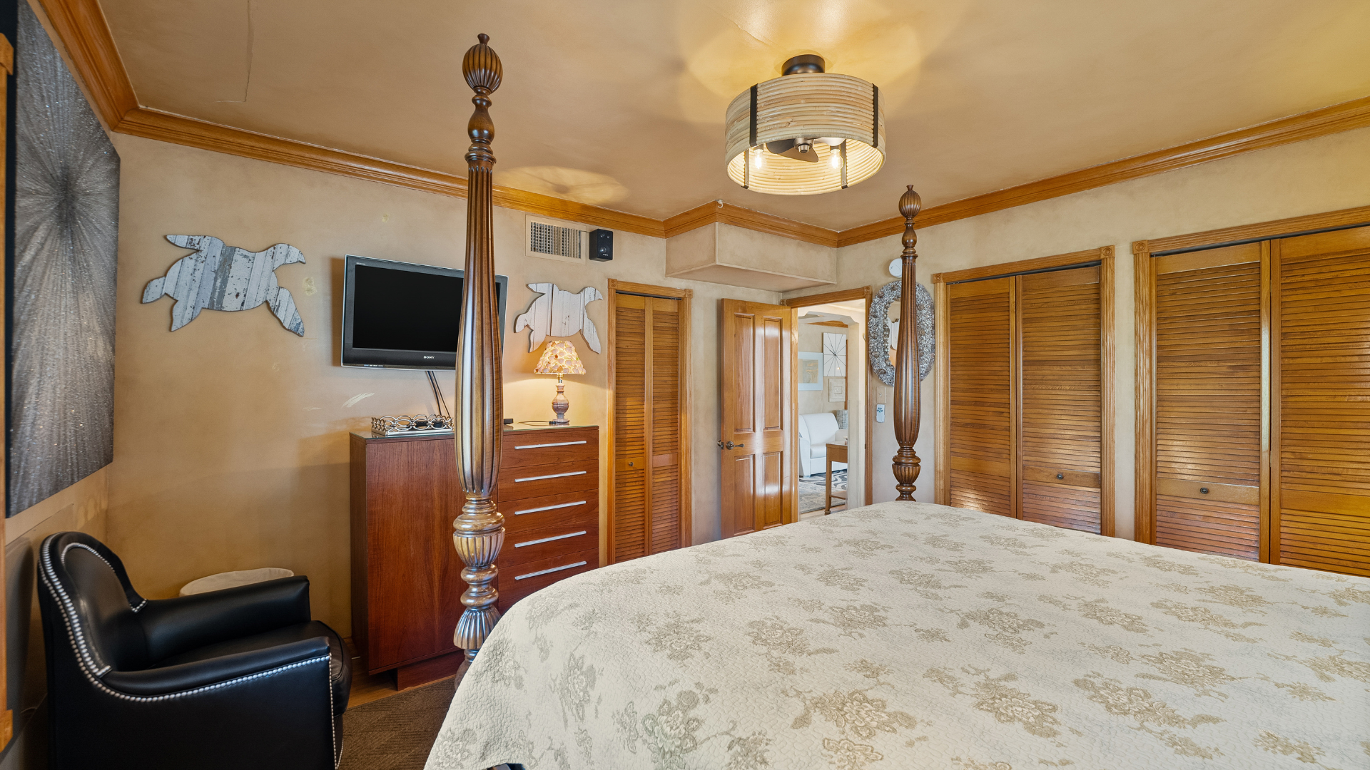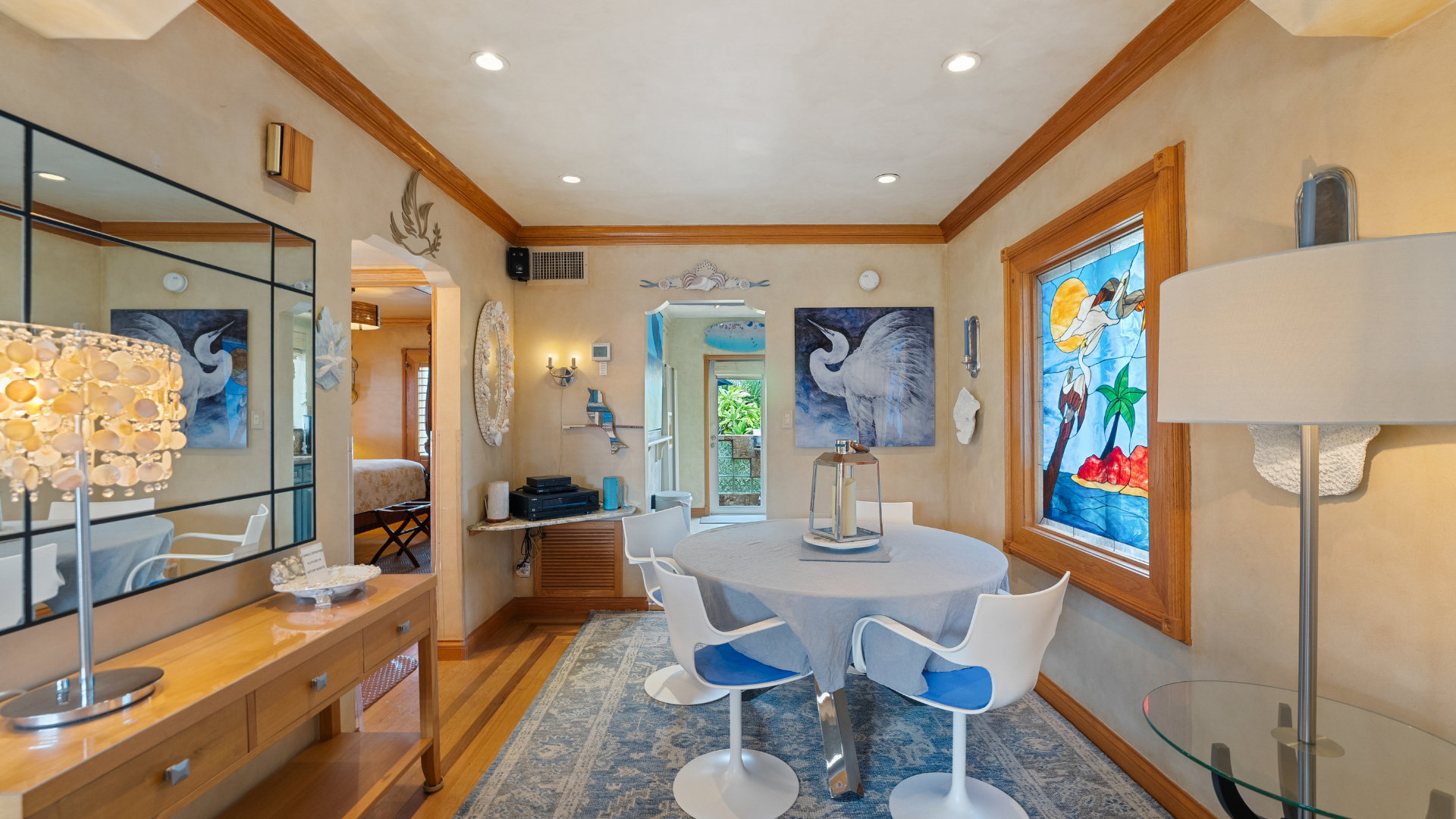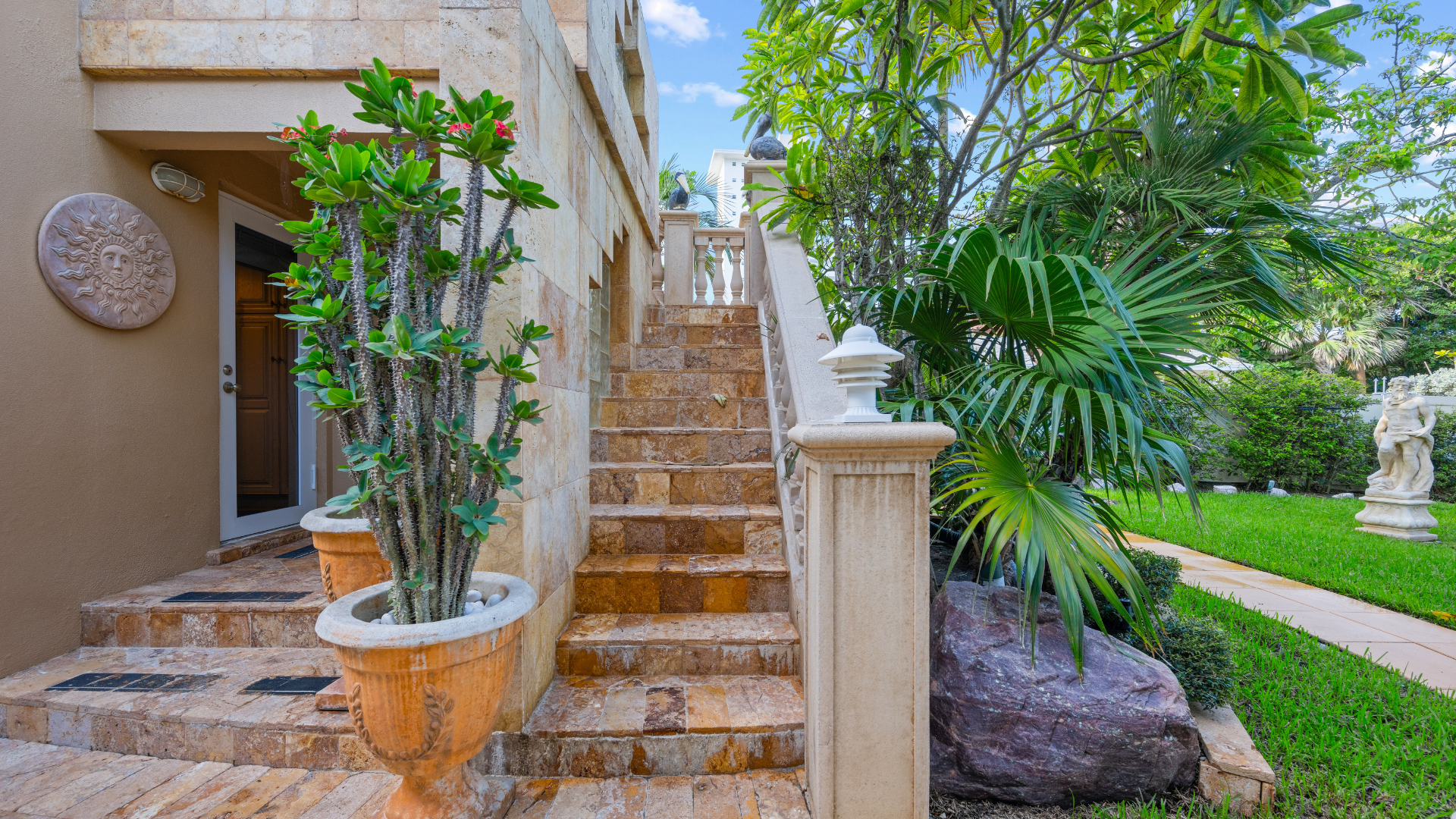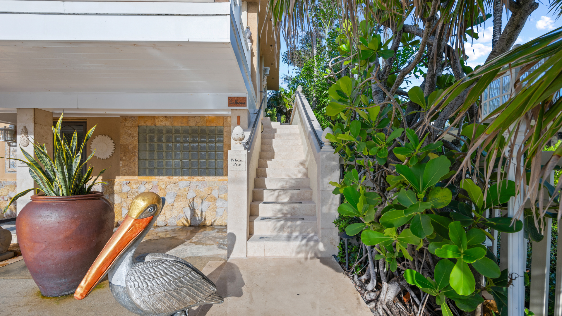 Casa Mia Beach House is the ultimate destination for travelers in search of impeccable accommodations. Ascend the elegant ivory staircase to reach the front door entrance, where a unique abode awaits your arrival, promising a memorable stay from the moment you step inside.