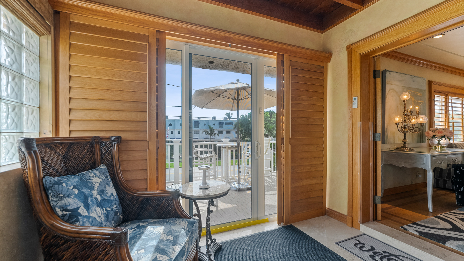 - The single bedroom features ivory marble flooring with hurricane sliding glass doors opening to Atlantic Ocean breezes and a furnished ivory marble balcony with an umbrella table, high chairs and 2 lounges.